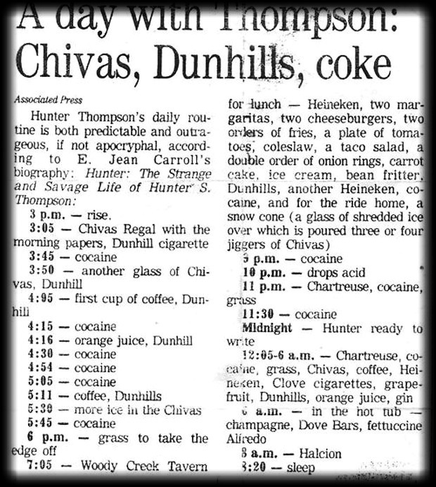 …you have to get paid for it or else you’re going to be locked up.” ~ Hunter S. Thompson (July 18, 1937 – Feb 20, 2005)
