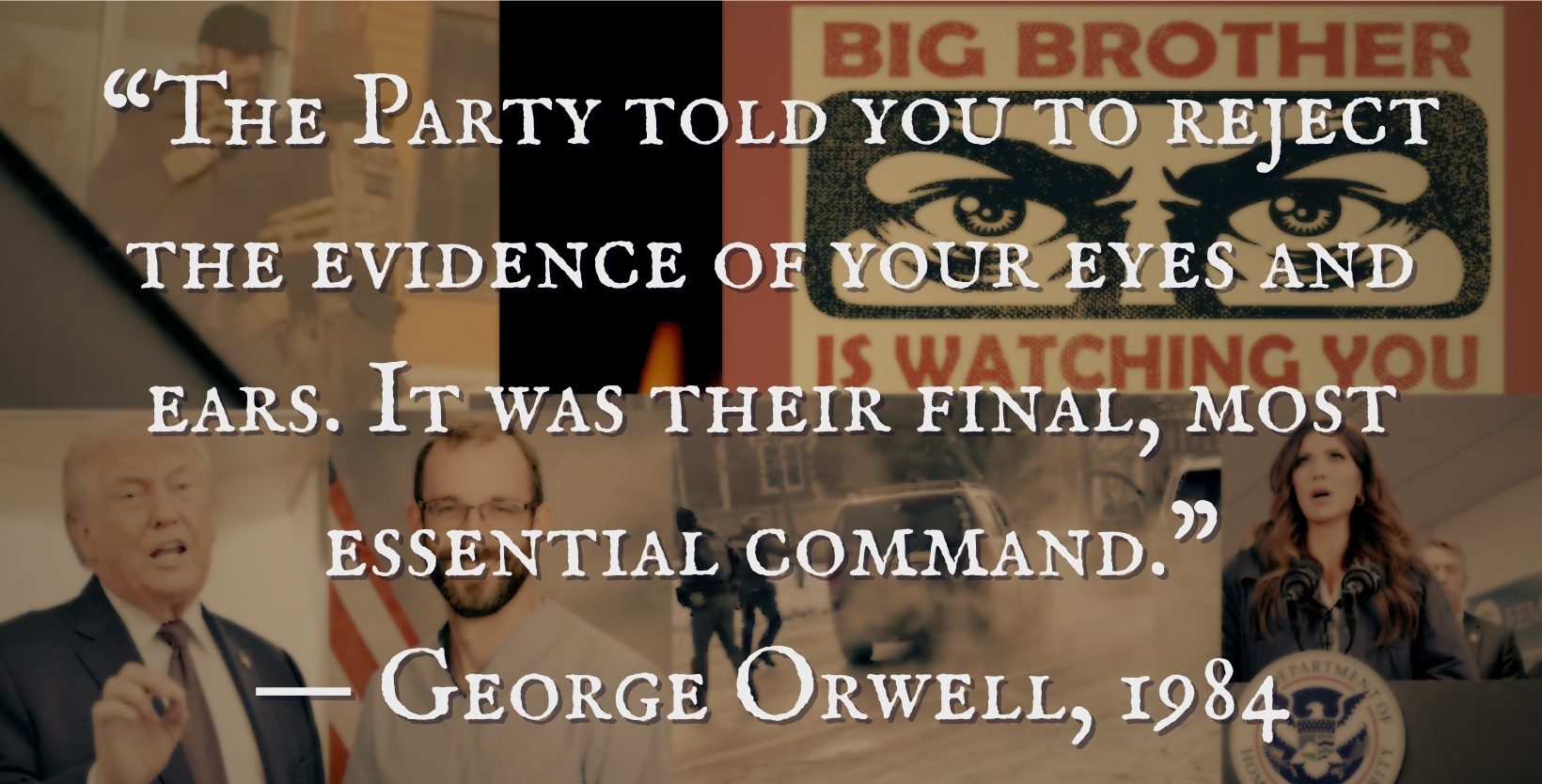 Watching Kristi Noem and other Republicans once again deny reality and twist the shooting into something it plainly is not would almost be impressive if it weren’t so preposterous. The level of mental gymnastics they are demanding of the public is staggering. When regime propagandists like Noem and Gregory Bovino go on television and tell the American people to accept the “official” version of events, even when it directly contradicts what anyone with eyes and a functioning brain can clearly see across multiple videos from multiple angles, we’ve crossed into classic Orwellian territory, textbook doublespeak straight out of 1984.